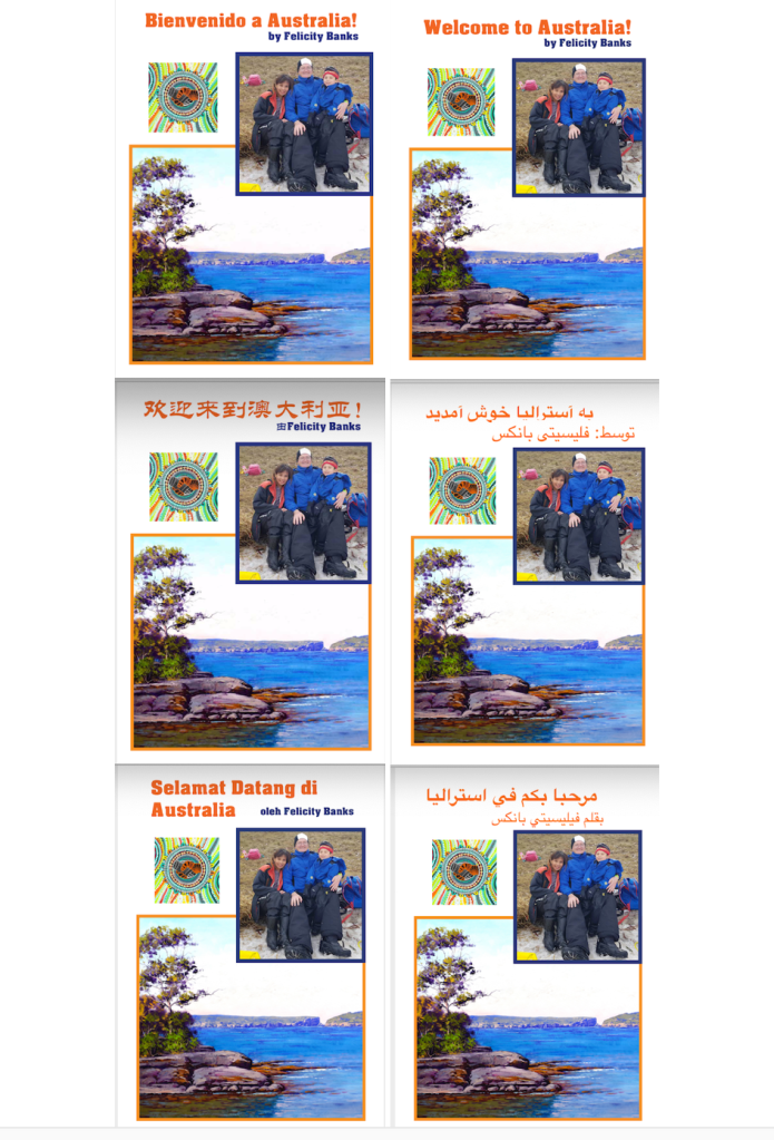 Felicity Banks is also the author of several books including the picture book “Welcome to Australia” (there are versions in Spanish, English, Mandarin, Dari Persian, Indonesian, and Arabic). It is designed for immigrant and refugee kids to read with their parents.